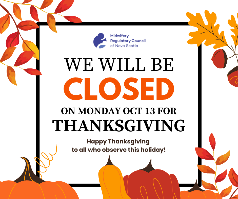 We will be closed on Monday, October 13 for Thanksgiving Day.