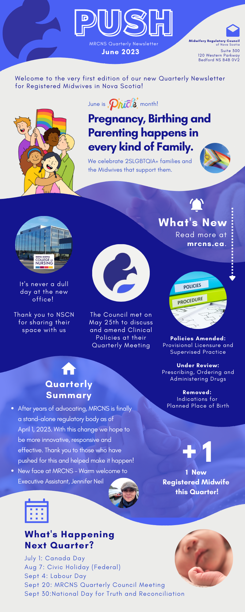 Welcome to your MRCNS Quarterly Newsletter “PUSH” where you can find out the latest news from the Midwifery Regulatory Council…